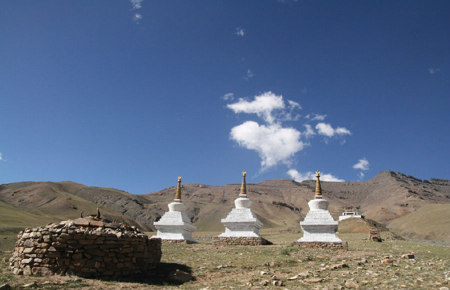從稻城驅(qū)車經(jīng)日瓦到亞丁來到了真正的“香格里拉”。 途步或騎上藏馬深入念青貢嘎日松貢布(亞丁自然保護區(qū)),上行一小時到達沖古寺。沖古寺(3880米) 位于仙乃日雪峰腳下。寺院毀壞嚴重,一片殘垣斷壁,傳說高僧卻杰貢覺加錯為終身供奉神山,宏揚佛法在此修建寺廟,因動土挖石而觸怒神靈導(dǎo)至殘敗。婉蜒上行,三座完全隔開,但相距不遠,呈“品”字形排列的雪峰突現(xiàn)。在整個藏區(qū)里如此集中的神山是絕無僅有的,北峰仙乃日6032米,南峰央邁勇5958米,東峰夏諾多吉5958米。三座雪峰潔白,峭拔,似利劍直插云霄。仙乃日像大佛,傲然端蓮花座;央邁勇像少女,嫻靜端莊,冰清玉潔;夏諾多吉像少年,雄健剛毅,神彩奕奕。雪峰周圍角峰林立,大大小小共三十多座,千姿百態(tài),蔚為壯觀。山峰前鑲嵌著碧藍如玉的湖泊和草甸。雪線下冰川直插碧綠的原始森林。雪山、峭壁、陡崖、海子、冰川、草場、森林、溪流,給我們營造出一片靜謐、安詳?shù)氖劳庵。但它們的真正存在卻是在藏民的心中,她浸潤了多少藏人的希冀和夢想,那是他們靈魂的歸宿之地。在地球變得越來越擁擠,越來越不潔凈之時,那端坐云霄的貢嘎日松貢布,越加顯得珍貴,令人向往。